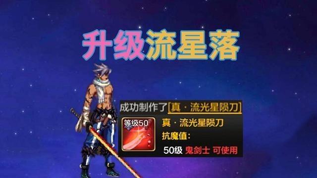 流光星陨刀(50 级粉太刀)俗称 “流星落”,火属性攻击,攻击有几率召唤陨石砸落;刀身修长帅气,当年 PK 场与刷图都极具统治力,价格一度高达数千元;出处为老鼠、无头骑士等高级副本。