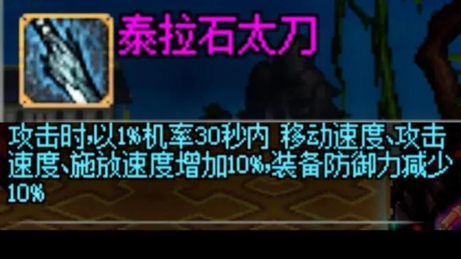泰拉石太刀(50 级史诗太刀)60 版本 “肝帝” 象征,需通关比尔马克帝国试验场收集泰拉石制作;属性为攻击时提升三速,减少自身防御,是追求极限攻速的狂战士、剑魂首选;制作周期极长。