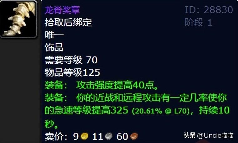 属性:+30 敏捷,装备有几率提高急速等级 325 点,持续 10 秒;狂暴战、盗贼、惩戒骑、猎人的 PVE 毕业级饰品,PVP 也强势。